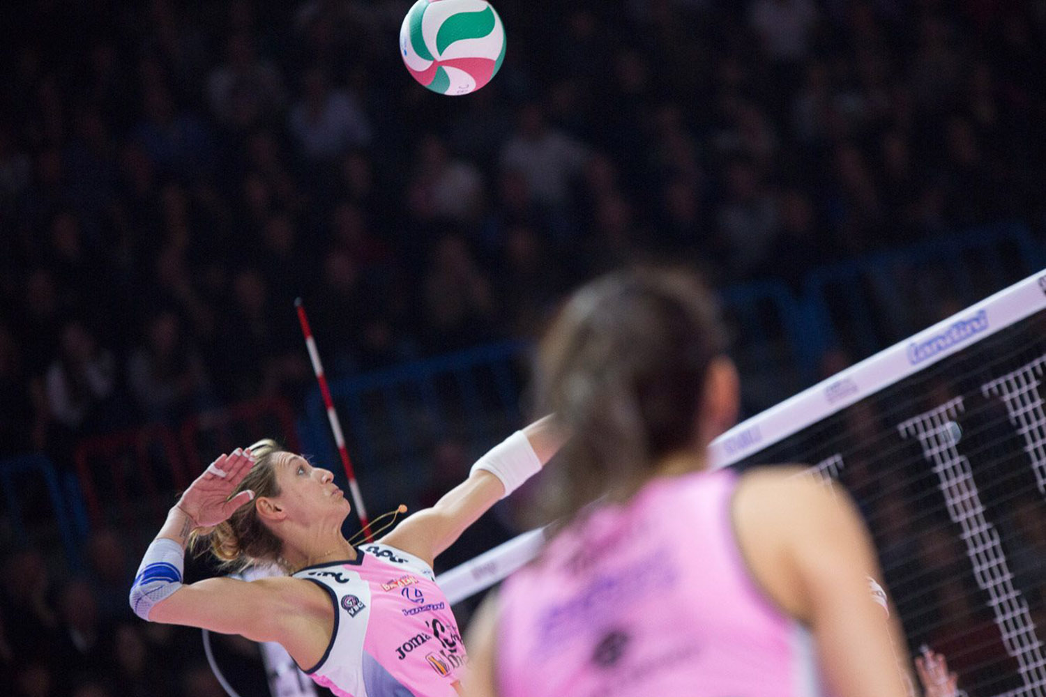 Secondo set. Carcaces trova una bella diagonale lunga e sigla il 3-1 Pomì. Bello lo stacco ad un piede di De Kruijf che sigla il 4-5, ma Bosetti ristabilisce le distanze. Rahimova beffa il muro di Sylla con un attacco senza staccare da terra, 7-5 Pomì. E’ ancora l’opposta azera a portare la Pomì stavolta in doppia cifra, 10-6, Carcaces allunga, time out Conegliano. Si torna in campo ed è ace di Caterina Bosetti, 12-6. Tirozzi entra al posto di Sylla e sigla subito un ace, 8-16. Il tentativo di Carcaces si infrange sul muro veneto così coach Gaspari chiama time out, 12-9 Pomì. Conegliano non molla e si porta in parità, 12-12, entra Radenkovic per Pincerato. Conegliano è in un ottimo momento e Danesi segna anche un ace, ma le rosa rosicchiano un punto, 14-16. Wolosz e compagne accelerano incredibilmente il ritmo del gioco ma le rosa con Rahimova e Bosetti accorciano le distanze, 17-21. Arrighetti vince in contrasto a rete con Wolosz e sigla il 20-23, time out Conegliano. La Pomì ci prova ma sono le venete a chiudere la frazione 25-21. Top Scorer: Bosetti 5, Danesi 7