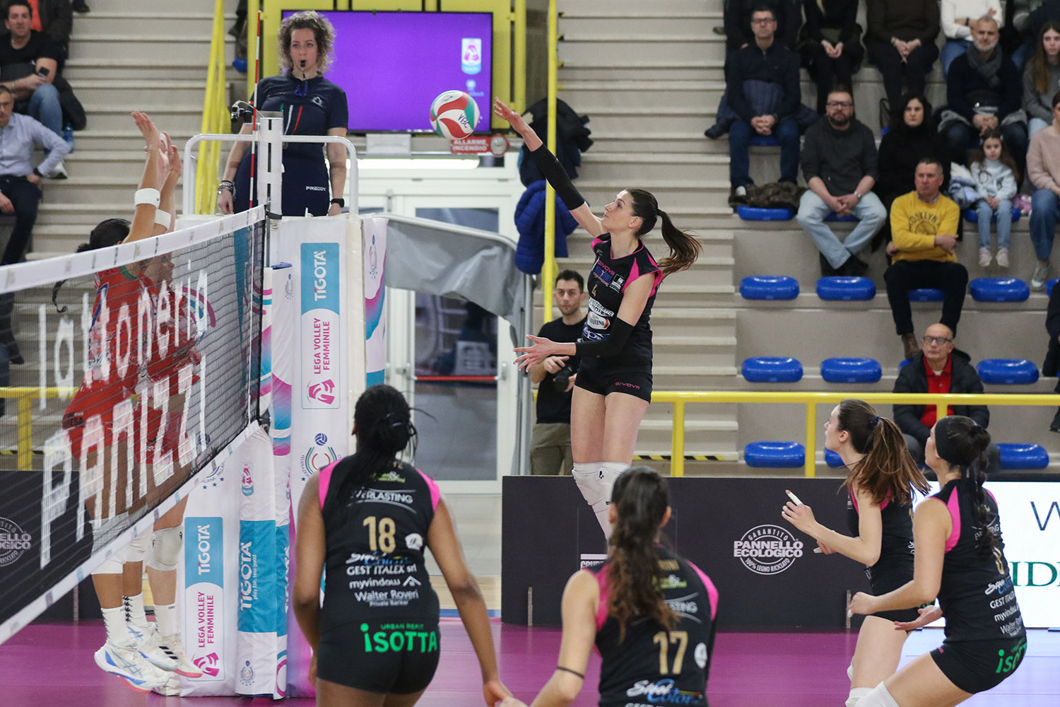 E’più: Pasquino 6, Ravarini 21, Dumancic 5, Nwokoye 5, Costagli (K) 16, Vazquez 9, Faraone (L), Mattioli 2, Nosella 1, Neri, Stafoggia. Non entrate: Morandi, Rastelli, Kovalcikova (L). All. Cuello-Beccari.
