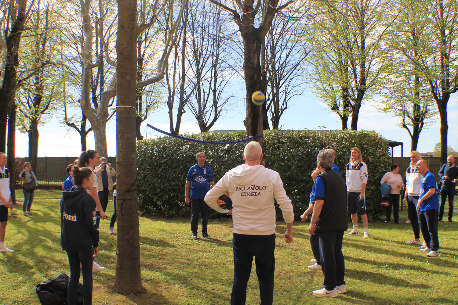 Sono stati mostrati due video molto emozionanti grazie ai quali l’educatrice Michela ha presentato le attività della Fondazione ma soprattutto tutti i giocatori della squadra dei “Cingers” che hanno rivelato, ad uno ad uno, cosa per loro è la pallavolo e cosa li spinge a giocare. Ma come non poter scambiare due palleggi quando ci sono presenti due squadre di pallavolo? Ed ecco che nel giardino della struttura è partita la sfida, mescolando i componenti, con tante risate e tanta voglia di divertirsi da entrambe le parti.