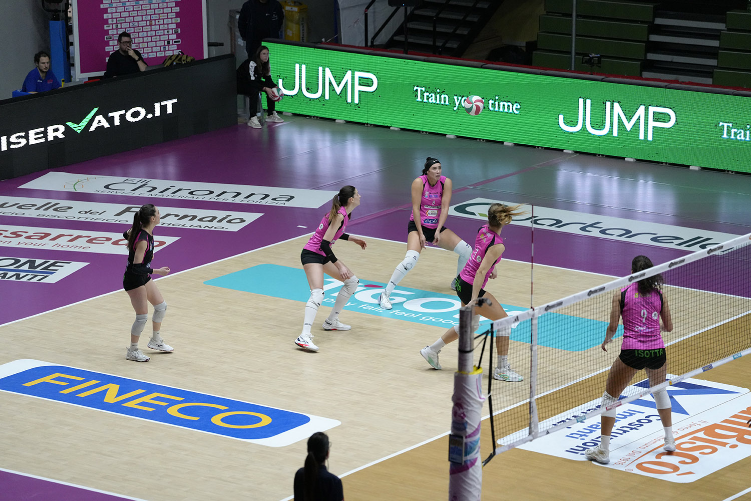 Terzo set. Bierria apre la frazione, Pasquino pareggia i conti, 1-1, Krasteva riporta avanti le sue 2-1, l’ace di Bierria fa 3-1. Bierria fa 4-1 in pipe e coach Cuello deve chiamare time out. Si torna in campo e il primo tempo di Nwokoye è fulmineo, 2-4, il muro poi della centrale rosa accorcia 3-4. E’ l’ace fortunoso quanto efficace di Costagli a pareggiare i conti, 4-4, il mani out seguente di Ravarini fa 5-4. Nwokoye ferma anche l’aria, sigla il 6-4 e coach Dell’Anna deve chiamare time out. Si torna in campo e arriva un altro ace di Costagli, 7-4. Krasteva prova a piazzare la botta ma Nwokoye mette il monster block, 8-5, la diagonale a tutto braccio di Ravarini allunga, 9-5. La doppia cifra per le rosa arriva con un errore in costruzione delle bianco nere, 10-5, Vazquez allunga nuovamente in parallela, 11-5, time out Altamura. Bel mani out di Vazquez, 12-7, la stessa schiacciatrice portoricana allunga in smash, 13-7. Ancora Vazquez, parallela sporca e 14-8, il muro di Costagli poi manda in confusione la difesa avversaria, 15-8. Ci pensa Ravarini in diagonale a chiudere il break per le rosa, 16-8. Palla morbida di capitan Costagli, 17-9. Gran botta in rincorsa di Costagli, mani out e 19-12, Arciprete poi manda out e fa 20-12. Arciprete trova il pallone del 15-20, Casalmaggiore chiama time out. Si torna in campo, extra rotazione per Ravarini, 21-15, arriva poi l’ace di Nosella, 22-15. Passante potente di Vazquez, palla al centro del campo avversario, 23-18. Arriva la palla del set per Casalmaggiore, mani out di Vazquez e 24-19. Dumancic chiude 25-19. Top scorer: Krasteva 6, Costagli e Vazquez 6