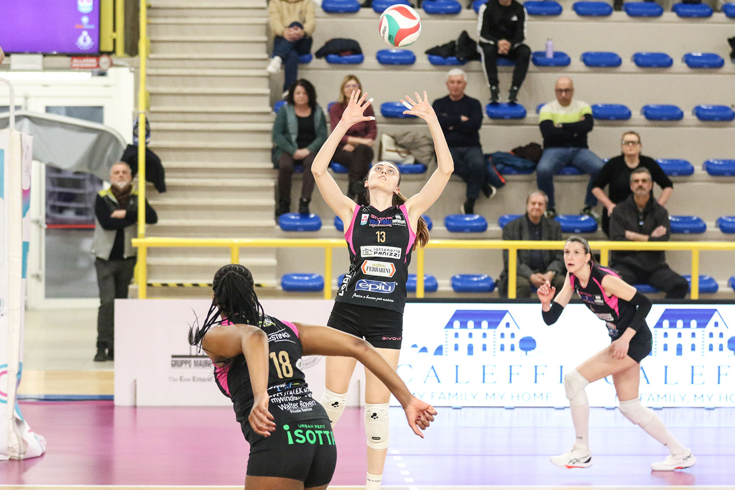 Terzo set. Il muro di Caneva sulla pipe di Ravarini apre la frazione, la stessa centrale allunga 2-0, Bellia chiude il break a favore delle ospiti, 3-0. Offanengo si porta sul 5-0 e coach Cuello preferisce chiamare time out. Si torna in campo e l’attacco di Costagli è positivo, 1-5, l’invasione fischiata alle ospiti fa 2-5. Missile di Ravarini in diagonale, 3-7. Ravarini abbatte letteralmente Di Mario, 4-8, Vazquez in seconda battuta accorcia nuovamente, 5-8. Neri imbecca bene Costagli che non se lo fa dire due volte, 8-14, la stessa capitana rosa ferma l’attacco di Caneva, 9-14 e conclude il break con una palla morbida, 10-14. Vincente il primo tempo di Nwokoye che mette il pallone nella zona sguarnita del campo, 11-15. Offanengo si porta sul 17-11, time out per coach Cuello. Tutto braccio per Ravarini, in diagonale l’opposta rosa fa 13-20. Parallela laser di Vazquez, buco per terra e 14-21, Ravarini con la sua battuta velenosa costringe la difesa all’errore, 15-21, il murone di Neri fa 16-21 e costringe coach Barbieri al time out. Super fast di Dumancic, la palla fende la difesa, 17-22, le ospiti poi mandano out il loro tentativo, 18-22. Le ospiti trovano in pipe la palla del set, Costagli annulla la prima in diagonale, 20-24. Caneva chiude in fast 25-20. Top scorer: Costagli 6, Bellia, Nardelli e Zago 5