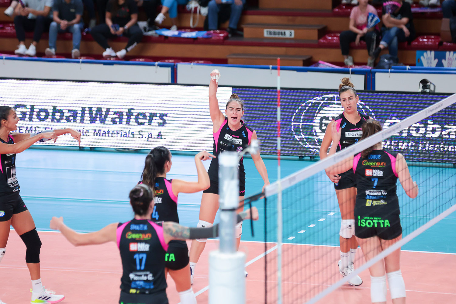 Vbc: Avenia 2, Smarzek 12, Lohuis 10, Melandri 3, Acosta 9, Perinelli (L) 1, De Bortoli, Faraone, Obossa, Cagnin 5, Manfredini 1, Edwards . Non entrate: Colombo, Hancock (L). All. Musso-Pintus